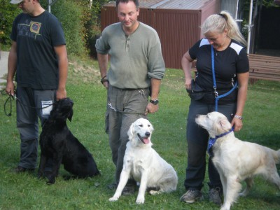 Fatima dneska s Františkem složila zkoušky OVVR v Hvozdné u Slušovic, s počtem 195b./ 232b. stejně jako její maminka Daphne. Bylo to hodně nervů a měsíc přípravy stál za to, tentokrát jsme to zvládli úplně sami, bez táborů a jiných lidí. Fatimka měla podobný problém, jak Daphinka a to byla ta nešťastná voda, proto tam bylo o trochu méně bodíků, ale to nevadí, je to holt takový divočák, má moc ráda vodu a spíš si tam ráda dlouho hraje a chytá tam hmyz a lístečky ve vodě a teprve až pak ji zajímal aport, ale už to máme zdarně za sebou. :)